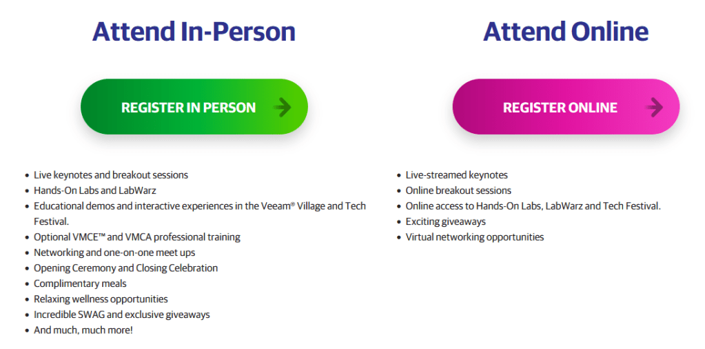 VeeamON is a hybrid event, so you can either go for the in-person event or attend online. The in-person part does have more to offer and the Veeam Legends/Vanguards did receive a discount code, which saves you 100$:
