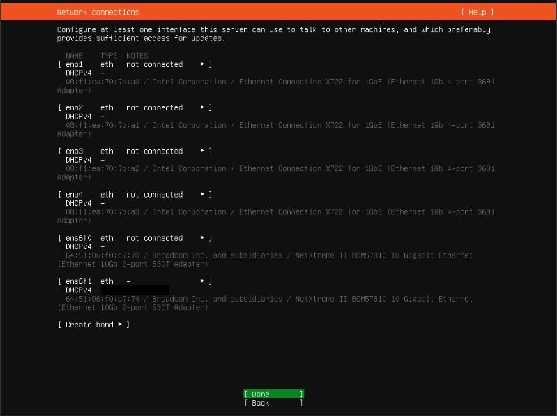 6. If you choose to create a bond between two network interfaces, once the bond is created, do you deactivate the two interfaces?