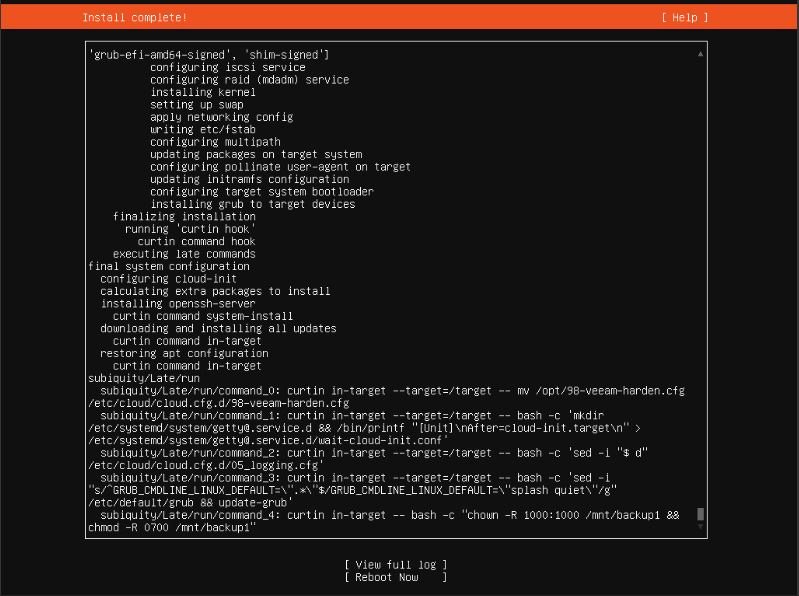 And this brings me to the announcement Christoph Meyer, Hannes Kasparick and Rick Vanover from Veeam made during their session. They have created a pre-built ISO which contains a minimal, hardened installation of Ubuntu Server 20.04 LTS. In addition all the necessary preparation steps for the hardened repository were already done. This means you only have to enter the network configuration, define the hostname and user credentials, and you’re good to go. Just be aware that the ISO will automatically re-format your disk storage; the smallest volume will be used for the OS, the volume for the backup files.