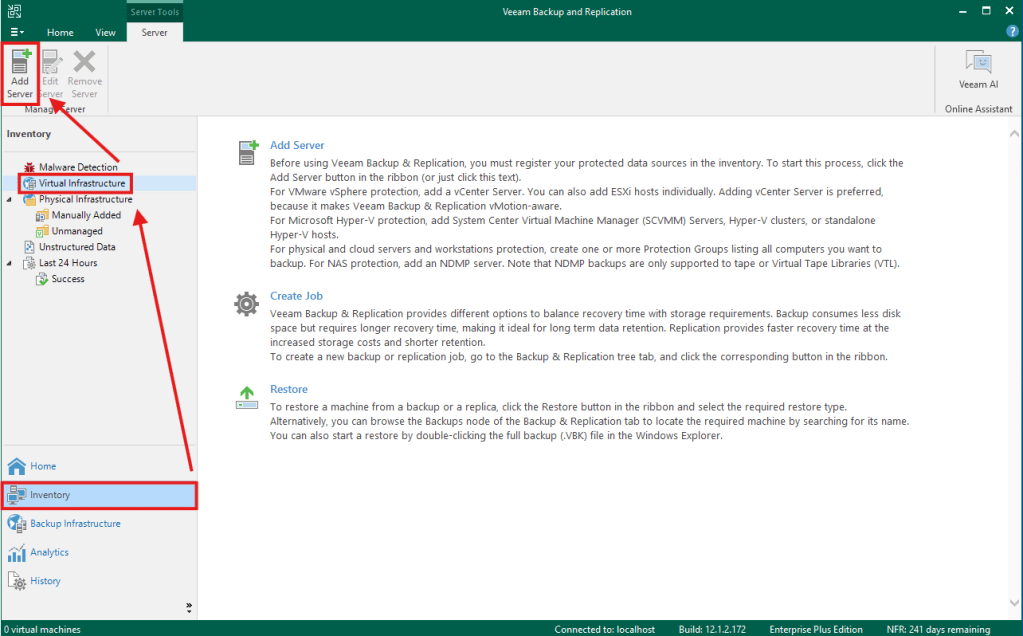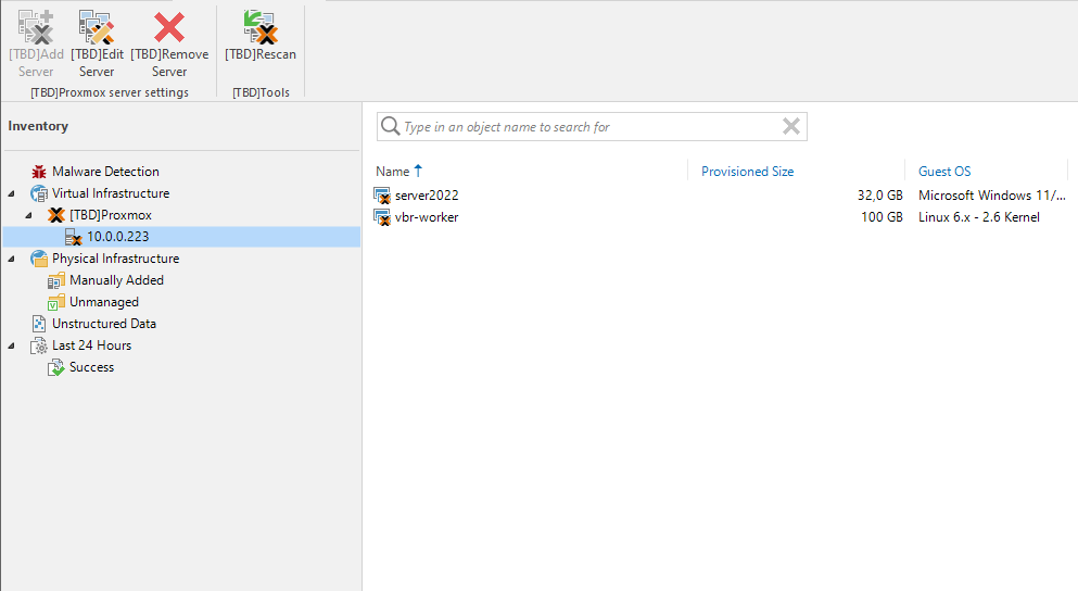 After installing the plug-in, Proxmox will be available as an additional server in the Virtual Infrastructure tab.