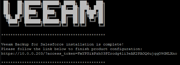 The installation script will download and install all necessary dependencies, included the PostgreSQL server, if you opt to install it on the same machine. When the setup is complete, you’ll see the following screen and receive the URL with an access token to finalize the configuration.