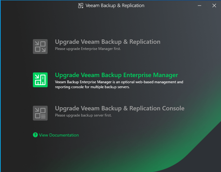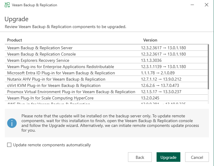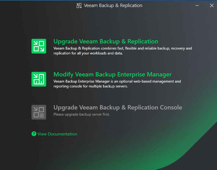 So far Version 13 of Backup & Replication has only been available as the Linux based Software Appliance. The Windows based server was still running on release 12.3 and therefore I started with upgrading to the RTM build.